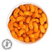 Ingredients: Soy protein concentrate, tapioca starch, sunflower oil, poppy seeds, salt, melted cheese powder (cheddar, havarti, blue and danbo cheese, whey powder, salt, sodium phosphate), whey and buttermilk powder, lactose, onion, contains 2 percent or less of paprika, garlic, tomato, jalapeno pepper, paprika extract, turmeric extract, rosemary extract, natural flavors, dextrose, lactic acid, citric acid, calcium lactate, sucralose (non-nutritive sweetener).