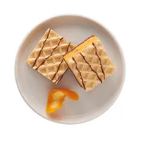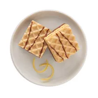 Ingredients: Protein blend (acid casein, hydrolyzed gelatin (beef), whey protein isolate, milk protein concentrate, whey protein concentrate, pea protein isolate), vegetable oil (modified palm oil, palm kernel oil, shea oil, sunflower oil), water, wheat flour, polydextrose, natural and artificial flavors, fructose, soy lecithin, low fat cocoa powder, mono and diglycerides, bamboo fiber, corn flour, soy flour, sucralose, citric acid, salt, sodium bicarbonate, apocarotenal color.