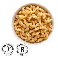 Ingredients: Soy protein concentrate, sunflower oil, tapioca starch, poppy seeds, sugar and fructose, salt, rice flour, onion, natural flavors, paprika, spices, garlic, vinegar extract, citric acid, rosemary extract.