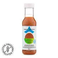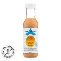 Ingredients: Water, soy sauce (water, soybeans, salt, sugar), modified corn starch, sesame oil, canola oil, sesame, salt, contains 2 percent or less of spices, vinegar, orange oil, concentrated lemon juice, caramel color, citric acid, stevia extract, sodium benzoate, potassium sorbate.