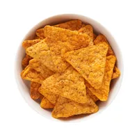 Ingredients: Soy protein concentrate, tapioca starch, sunflower and/or rapeseed oil, soy fiber, salt, icing sugar, contains 1 percent or less of garlic, onion, tomato powder, spices (paprika, black pepper, hot pepper, oregano, marjoram, turmeric), natural and artificial flavors, paprika extract, rosemary extract, maltodextrin, dextrose, citric acid, malic acid.
