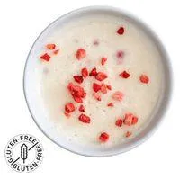 Ingredients: Milk protein isolate, greek yogurt powder (milk protein concentrate, skim milk powder, lactic acid, citric acid, bacterial culture), cream cheese powder (cream, skim milk powder, salt, guar gum, locust bean gum), natural flavors, gelatin (pork), dehydrated strawberries, sea salt, sucralose (non-nutritive sweetener), silicon dioxide.